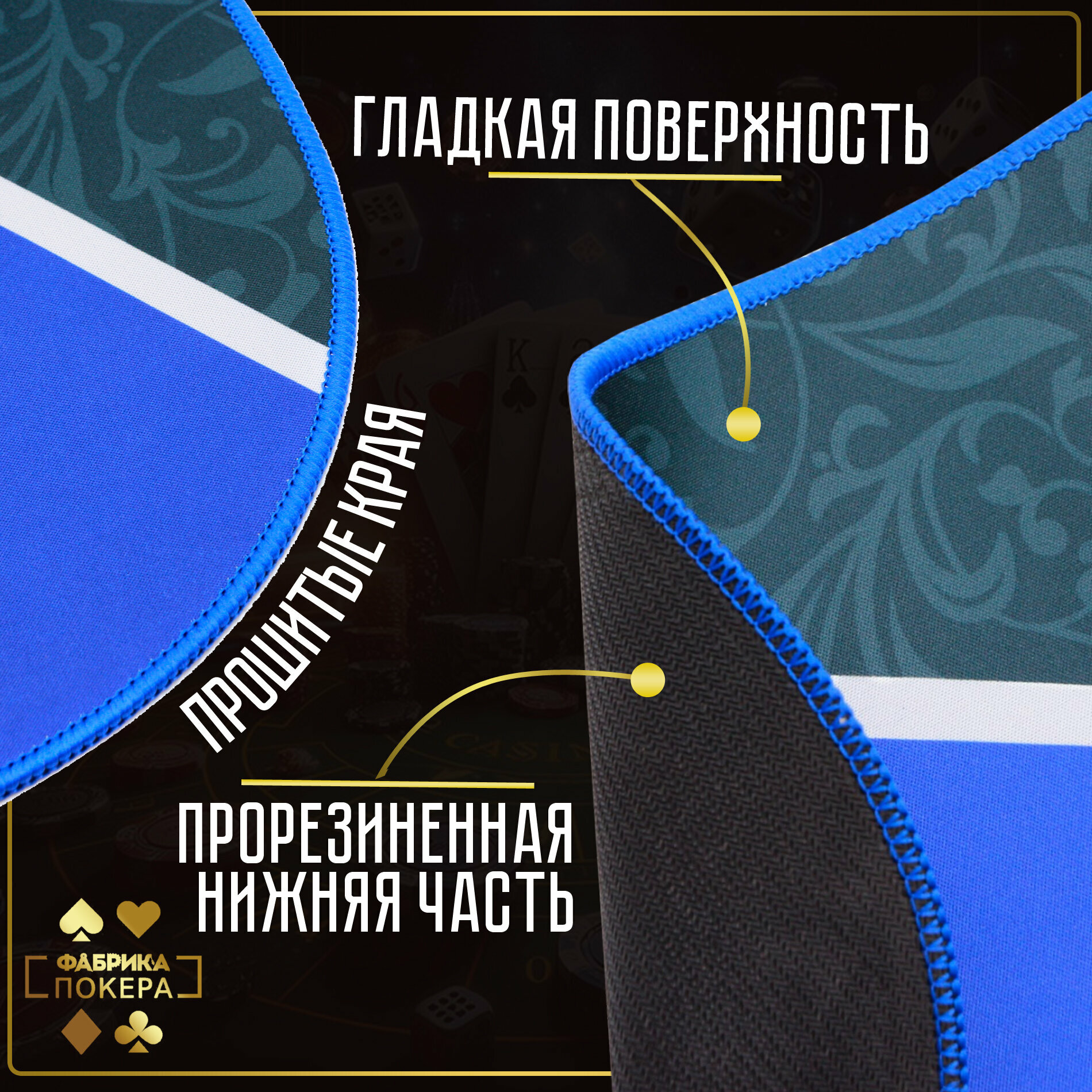 Уникальное сукно для покера синего цвета большого размера с разметкой на 6-10 игроков - сворачивается в рулон и убирается в водонепроницаемую переносную сумку-тубус.