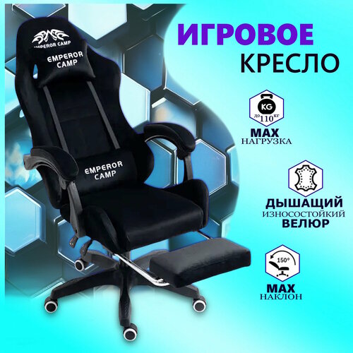 Купить Игровое велюровое компьютерное кресло EMPEROR CAMP 777, Черное с подставкой для ног с доставкой по всей России.