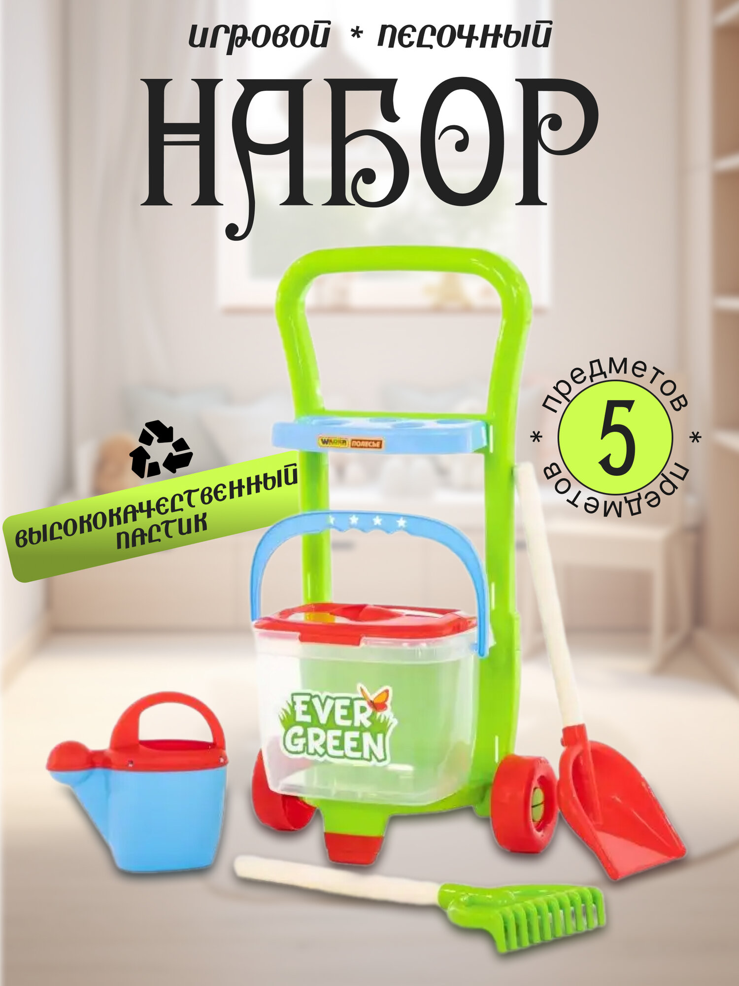 Игровой песочный набор Полесье «EverGreen» №395, пластик, (5 предметов) 38418: сравнение цен, характеристики, фото, актуальное наличие и цены.