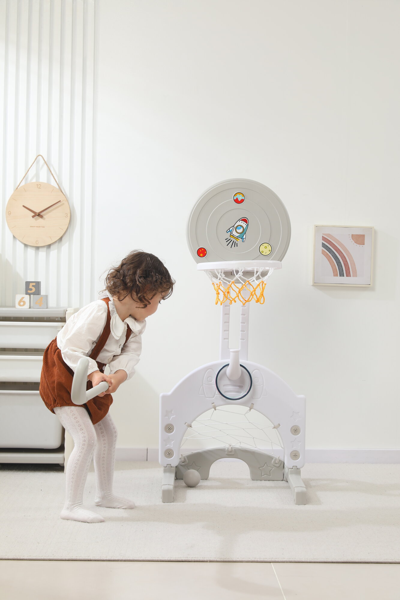 Купить Игровой комплекс 4 в 1 UNIX Kids Space Grey, хоккейные и футбольные ворота, баскетбольная стойка, для дома, улицы, дачи с доставкой по всей России.