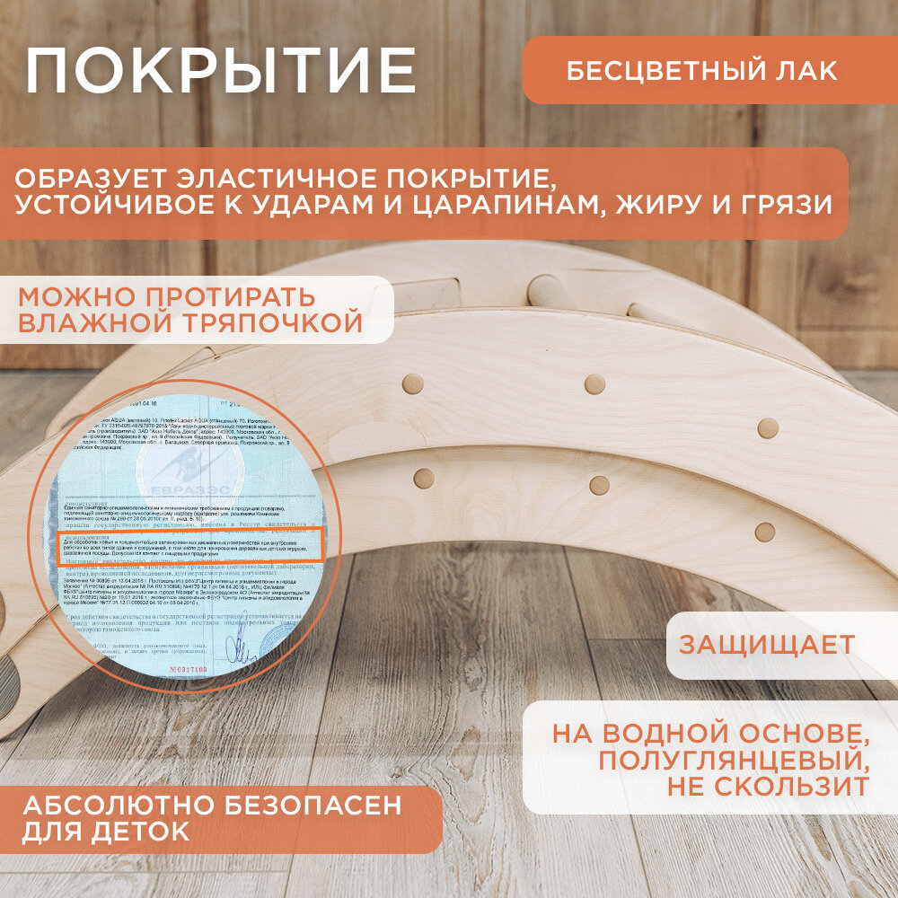 Качалка-трансформер - отличный подарок на долгие годы, который не оставит равнодушным ни одного ребёнка. Каждый малыш найдет игру по своим интересам. Ведь многофункциональная качалка 4в1 объединяет в себе мостик, качели, горку, балансир и всё то, на что ещё способна детская фантазия. Улучшенный дизайн, новые размеры и две секции сделали радугу-качалку более функциональной, что особенно важно для семьи с несколькими детьми разного возраста. Для самых маленьких качалка-мостик служит опорой и помогает сделать первые шаги. В 3-4 года качалка-горка - это часть сюжетно-ролевых игр с кучей идей от баррикады до стойки магазина. В 4-5 лет качалка-балансир помогает найти баланс и уверенно себя чувствовать на велосипеде, при хождении по бревну или поребрику. Ну и основная функция - качели, на которых так весело качаться. Все детали тщательно отшлифованы, имеют гладкую поверхность. Геометрия балансира исключает его переворот. Качество и безопасность подтверждается сертификатом соответствия.