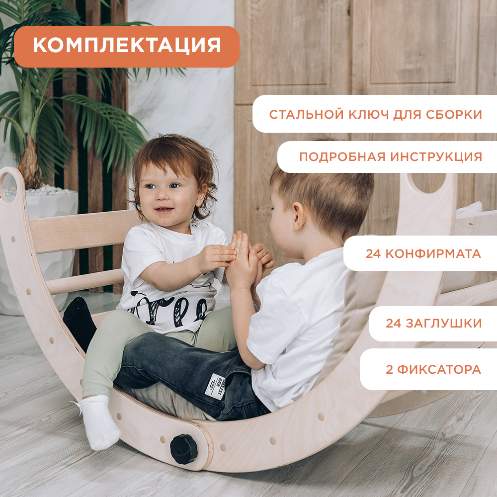 К качалке-трансформер можно докупить горку: Горка-лесенка с бортиками без покрытия - 551336483 Горка-скалодром бортиками без покрытия - 551333201