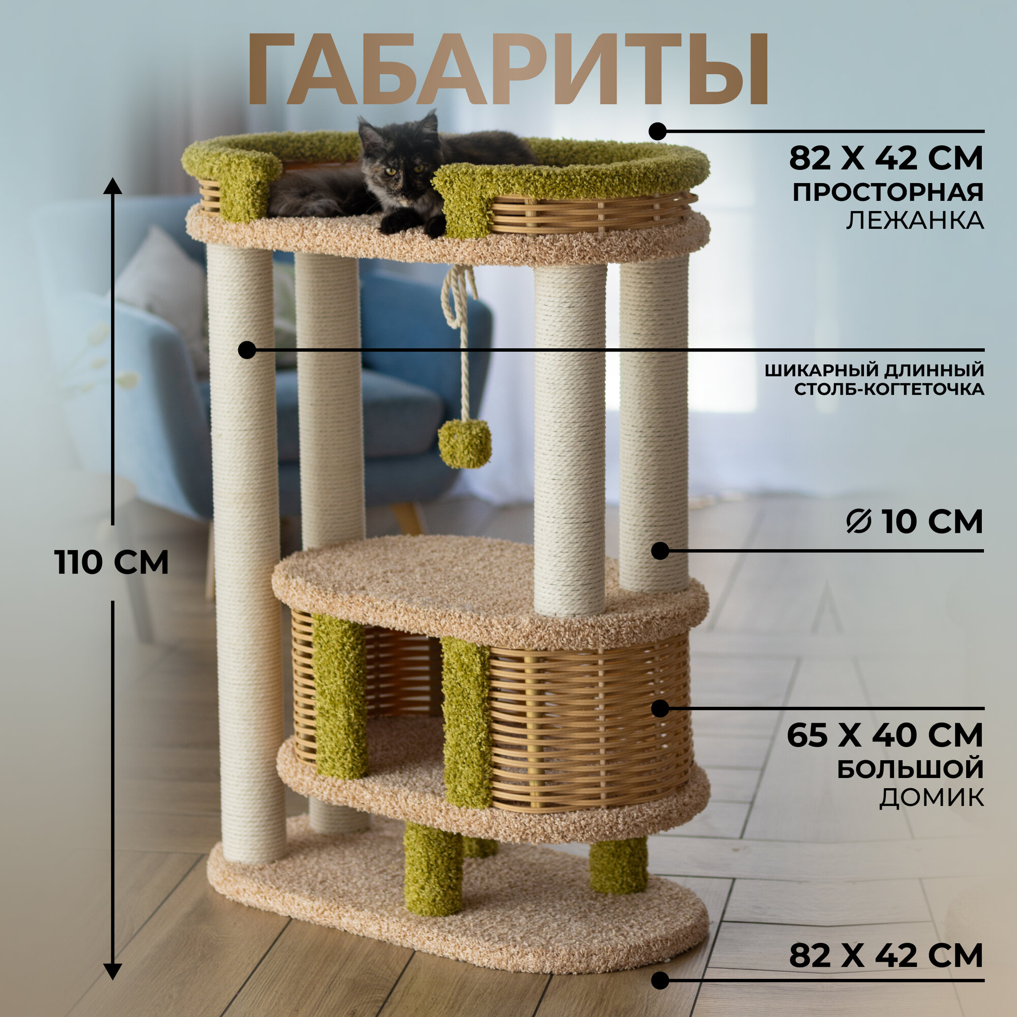 Игровой комплекс для крупных кошек 110 см. с большой лежанкой и когтеточками: сравнение цен, характеристики, фото, актуальное наличие и цены.