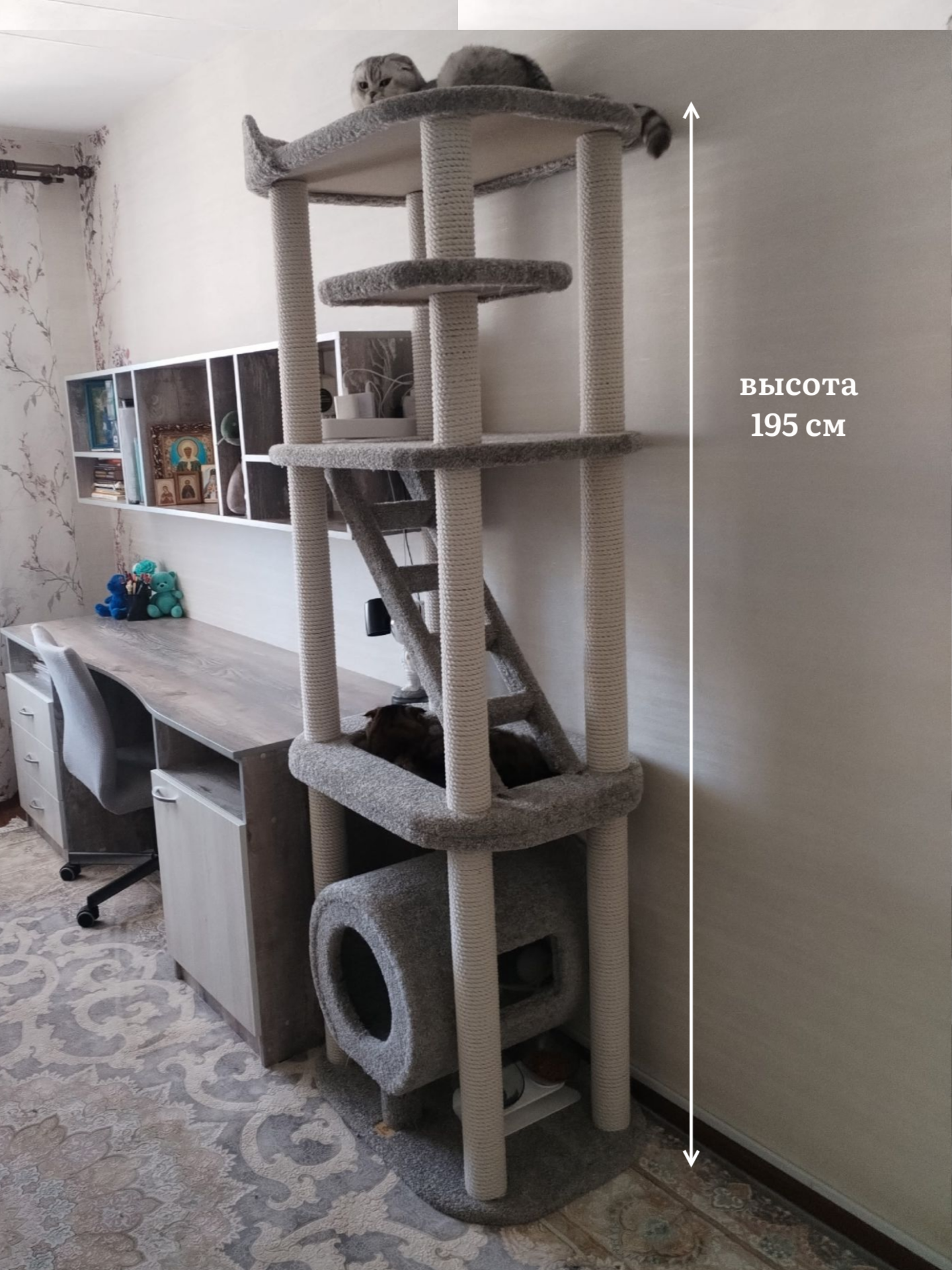 Игровой комплекс для кошек, Моя Котя, домик для кошки, «Колосс Родосский», светло-серый ковролин и хлопковый канат: сравнение цен, характеристики, фото, актуальное наличие и цены.