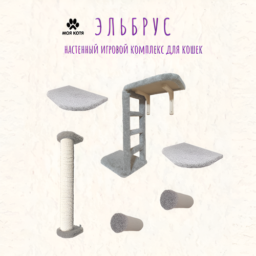 Игровой комплекс для кошек, Моя Котя, настенный,»Эльбрус», светло-серый ковролин и хлопковый канат: сравнение цен, характеристики, фото, актуальное наличие и цены.