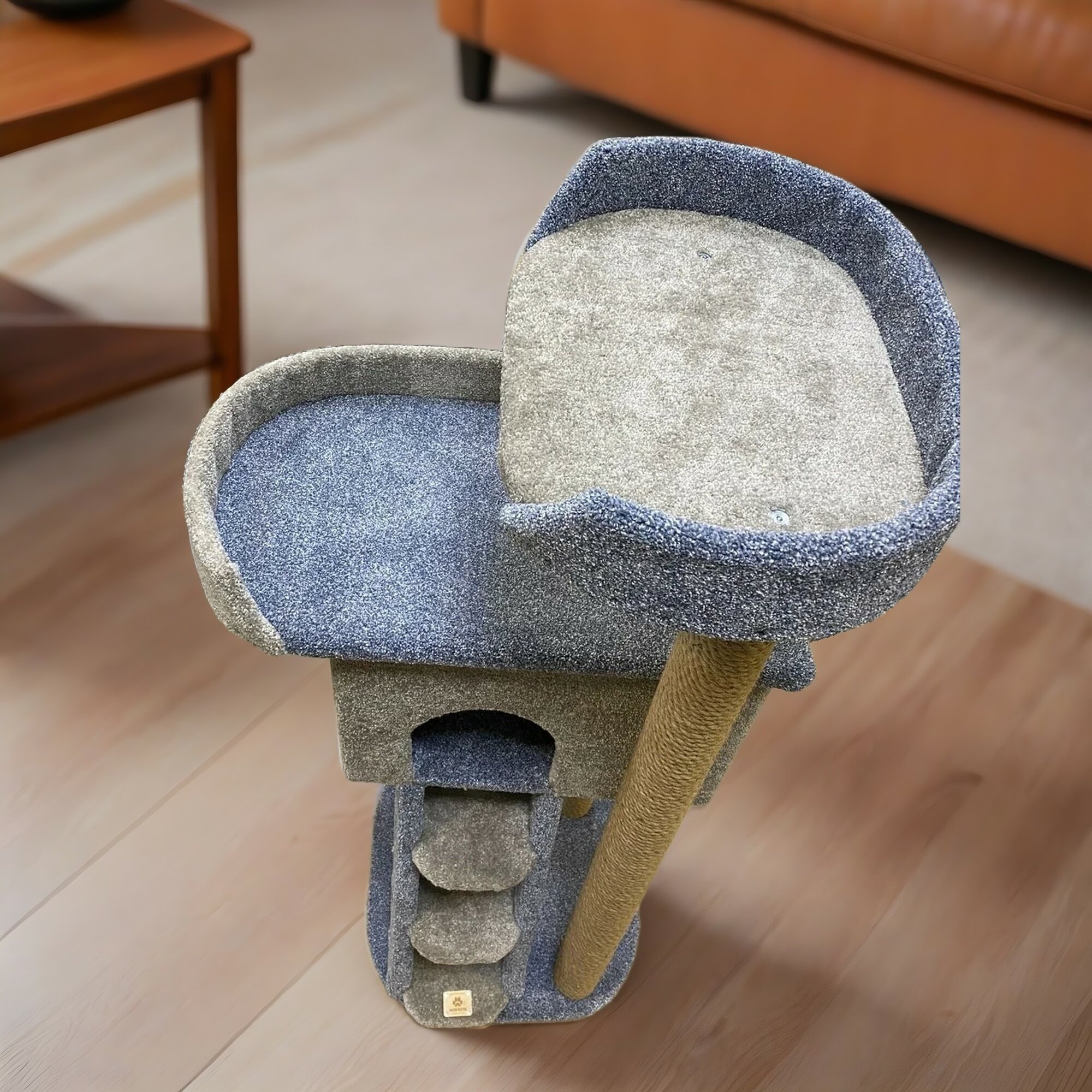 Игровой комплекс для кошек, Моя Котя,»Титаник», ковролин светло-серый с голубым и джутовый канат