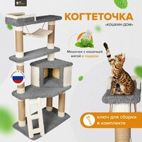 Купить Игровой комплекс для кошек с домиком и качелями когтеточка «Кошкин дом» графит с доставкой по всей России.