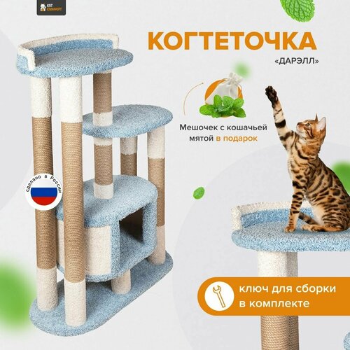 Игровой комплекс для кошек с домиком, когтеточка с лежанками «Дарэлл» голубой: сравнение цен, характеристики, фото, актуальное наличие и цены.