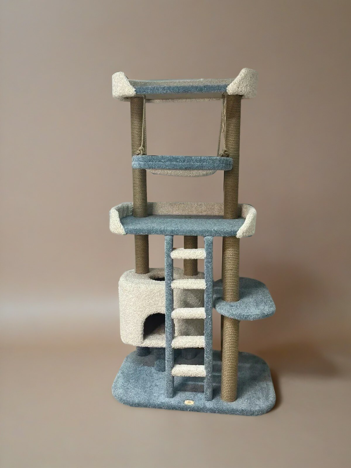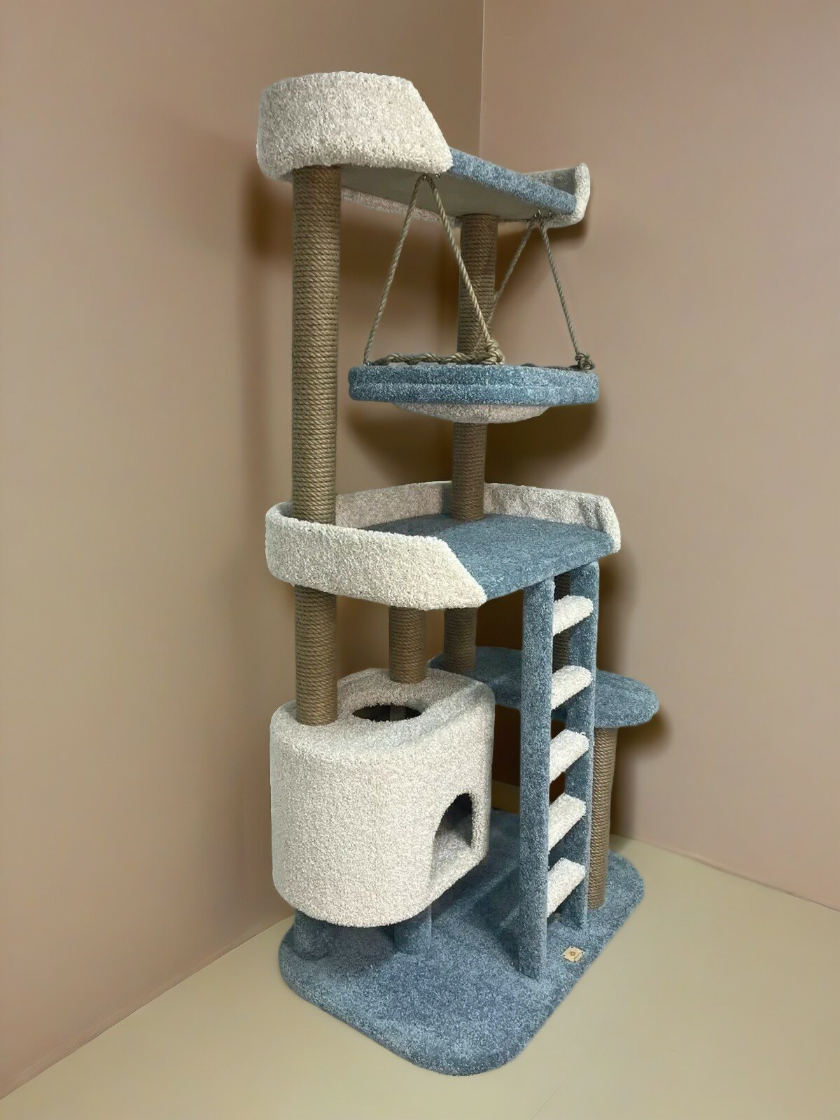 Купить Игровой комплекс для кошек с когтеточкой Моя Котя «Академгородок» подвесной гамак большие лежанки цвет аквамарин с доставкой по всей России.