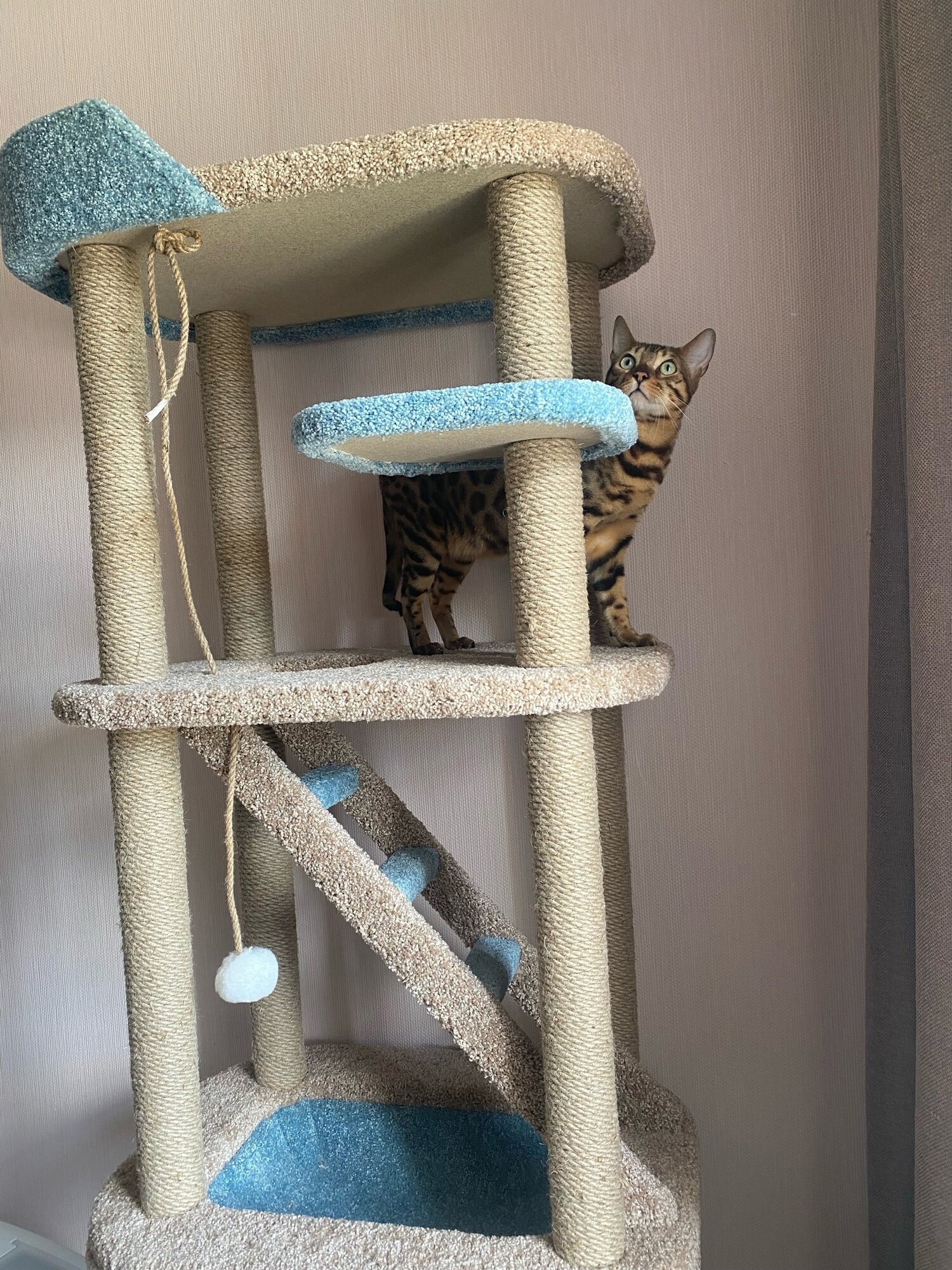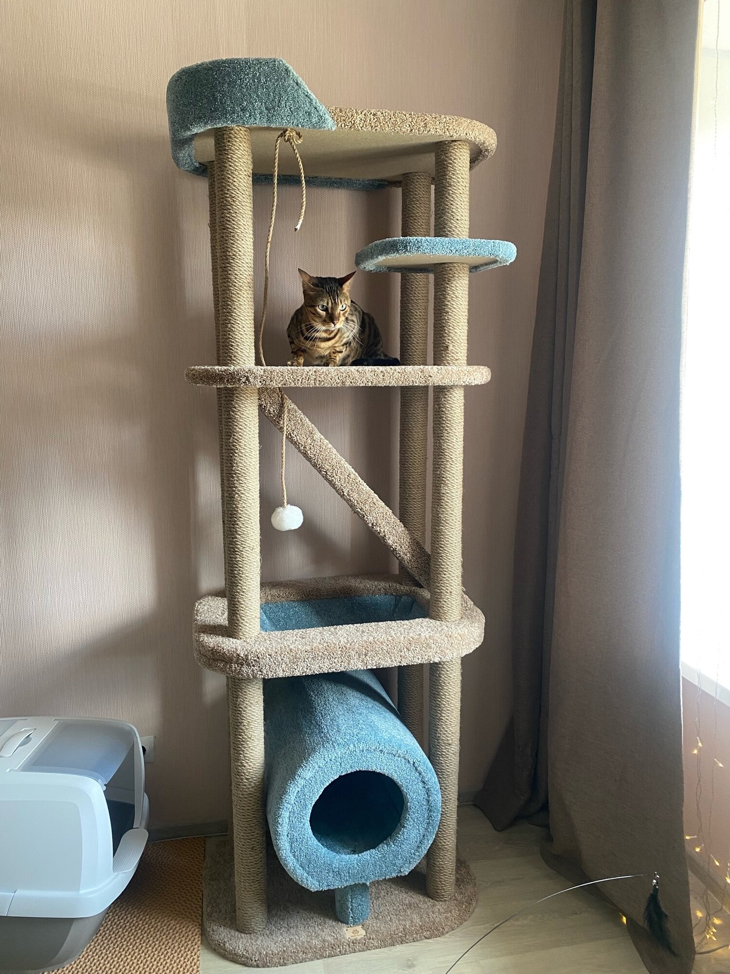 Игровой комплекс для кошек, Моя Котя, «Колосс Родосский», ковролин бежевый и бирюзовый, джут: сравнение цен, характеристики, фото, актуальное наличие и цены.