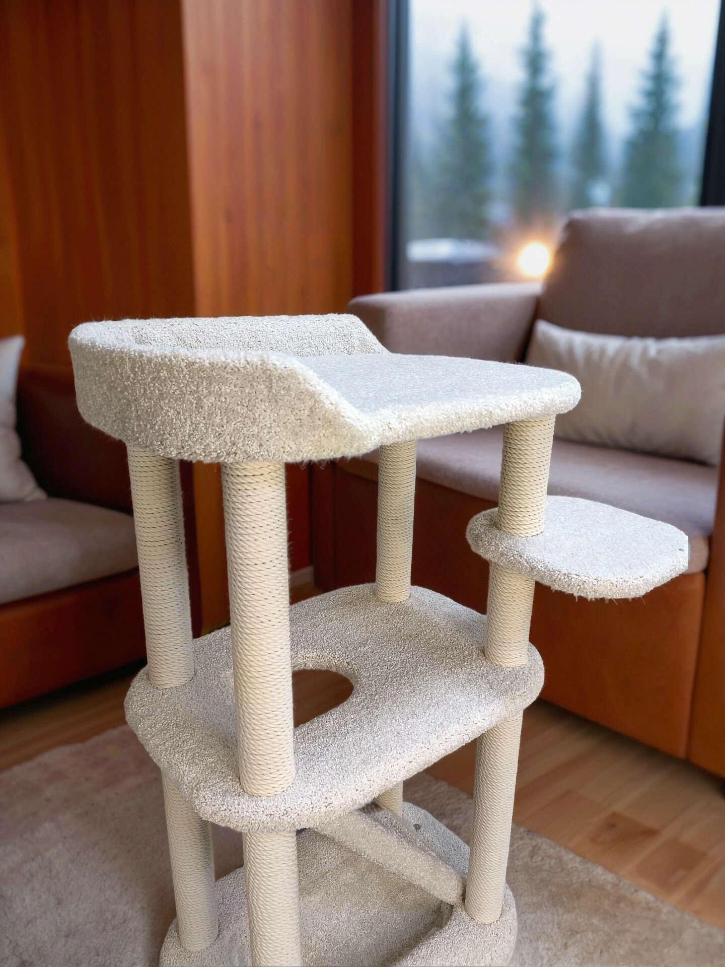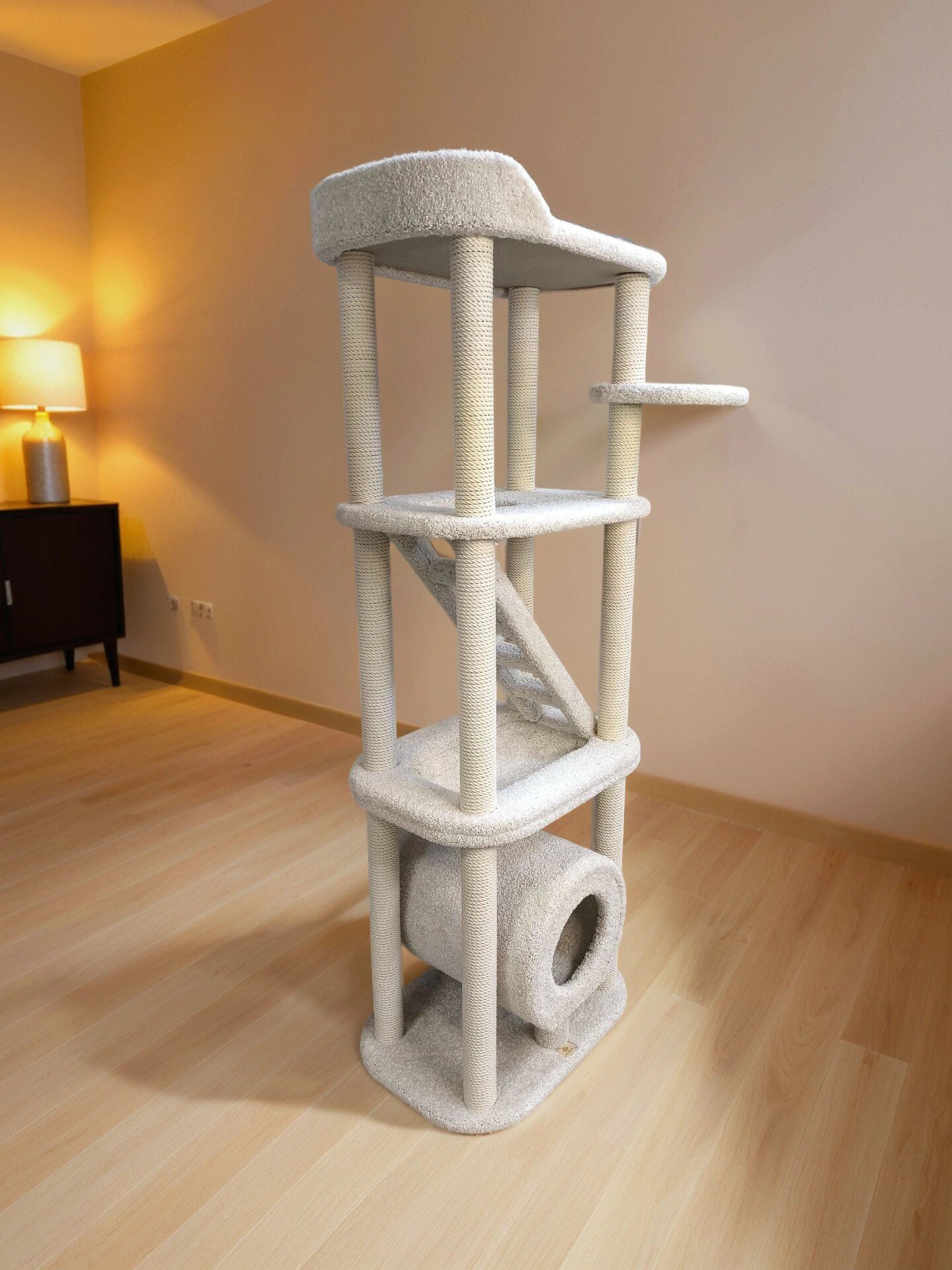 Купить Игровой комплекс для кошек, Моя Котя, домик для кошки, «Колосс Родосский», белый ковролин и хлопковый канат с доставкой по всей России.