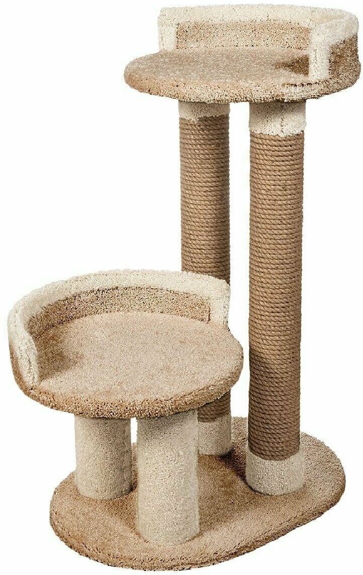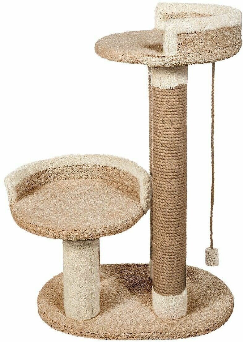 Игровой комплекс для кошек "Шерстинка" капучино с двумя лежанкам и двумя ярусами - это удобное и компактное решение для сохранения мебели и стен от когтей вашего питомца.