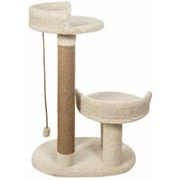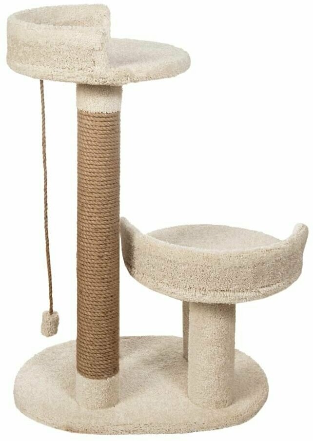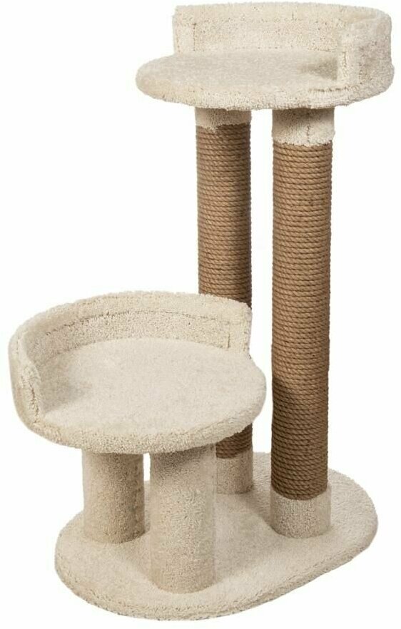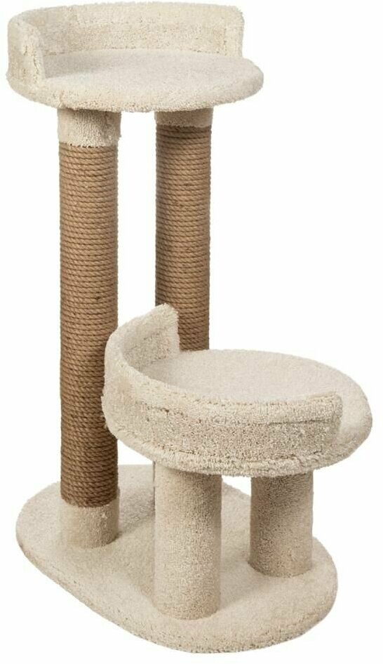 Игровой комплекс состоит из двух ярусов, что позволяет кошке перемещаться по нему и исследовать новые места. В комплекте с когтеточкой идет кошачья мята, которая привлекает внимание кошки и помогает ей точить когти.