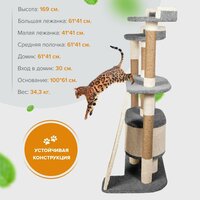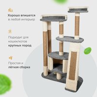 Высокий столбик диаметром 10 см с плотной обмоткой из джута, с лежанками из мягкого долговечного ковролина отлично подойдет как для взрослого крупного кота, так и для маленьких игривых котят.