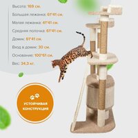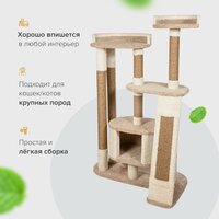 Высокий столбик диаметром 10 см с плотной обмоткой из джута, с лежанками из мягкого долговечного ковролина отлично подойдет как для взрослого крупного кота, так и для маленьких игривых котят.