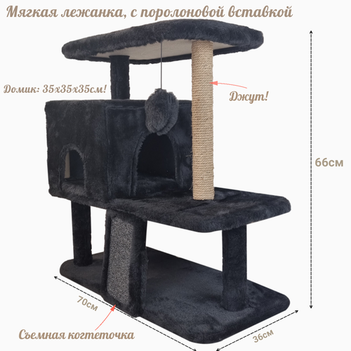 Игровой комплекс «Карлито», трехуровневый, с домиком и лежанкой, (мех, джут, поролон), 76*36*66 (h) см, цвет: черный: сравнение цен, характеристики, фото, актуальное наличие и цены.