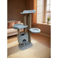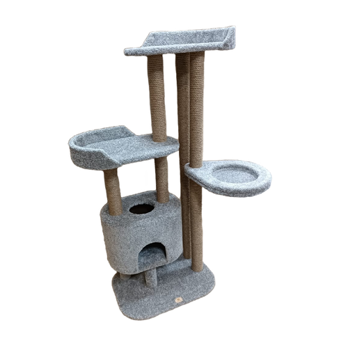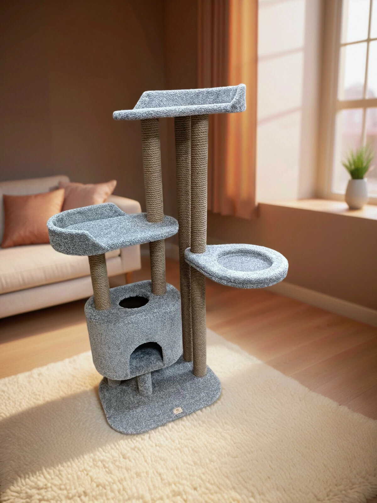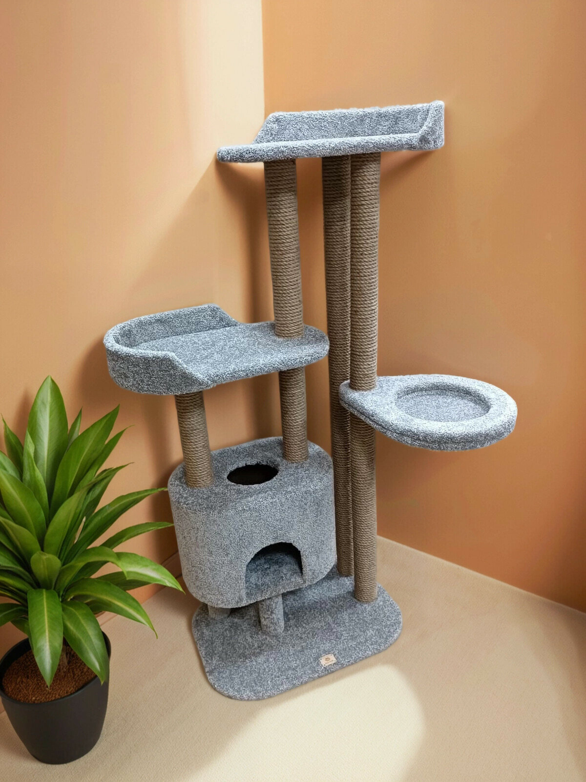 Игровой комплекс когтеточка сделан из высококачественных, экологически чистых материалов. Благодаря современному сочетанию цветов, он прекрасно впишется в интерьер вашего дома. Не пожалейте места в вашей квартире или доме для своего пушистика. Просторный домик с отверстием для лазания вверху отлично подойдёт как для отдыха, так и для игр. Для точения когтей в этом комплексе есть 2 столба по полтора метра и 3 небольших столбика 50 и 40 сантиметров. Две лежанки позволят использовать этот комплекс сразу для нескольких животных. Один гамак для отдыха, диаметр 40 см наружный и 30 см внутренний. Вход в домик размер 19х19 см. Основание комплекса 70/50 см. Очень простая сборка! Мастерская Моя Котя создает кошачьи домики и лежанки, с любовью и заботой о ваших питомцах.