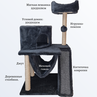 Игровой комплекс «Жмурка» с домиком, гамаком и когтеточкой, 60*45*120см, цвет: черный: сравнение цен, характеристики, фото, актуальное наличие и цены.