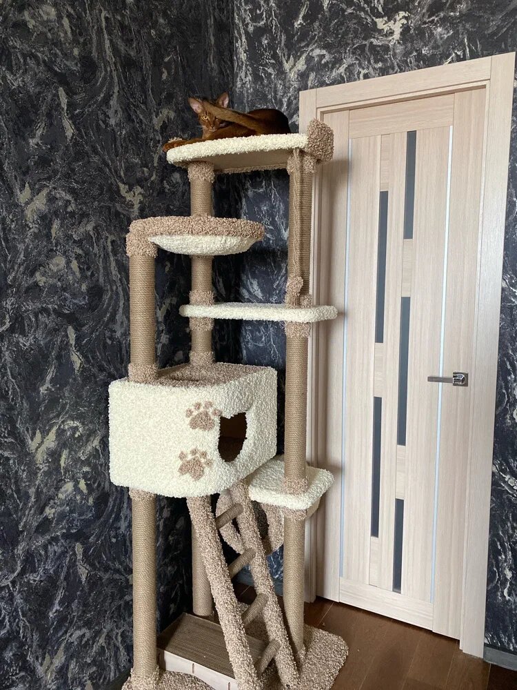 Игровой комплекс с домиком, гамаком, тоннелем и лежанками из ковролина , для кошки , высота 170 см , цвет коричневый и белый: сравнение цен, характеристики, фото, актуальное наличие и цены.