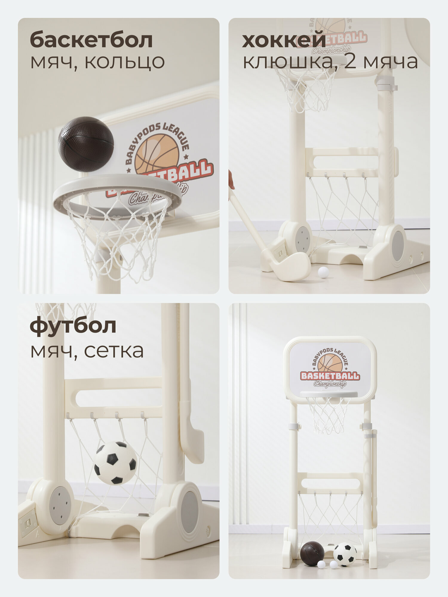 Игровой комплекс UNIX Kids Champion White 3 в 1 для дома и улицы: баскетбольная стойка, хоккейные и футбольные ворота: сравнение цен, характеристики, фото, актуальное наличие и цены.
