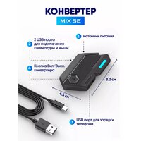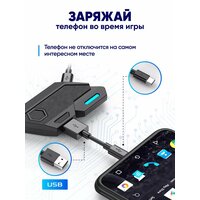Он состоит из мыши с дополнительными клавишами, компактной 35-клавишной клавиатуры с подсветкой и удобной опорой под кисть руки, адаптера и кабеля для питания, подставки под гаджет с регулировкой угла наклона, а также инструкции на английском и китайском языках с QR кодом для установки. Благодаря приставке для гейминга ваша видео-игра выйдет на новый уровень.