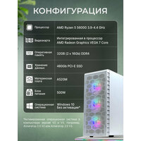 Игровой компьютер Аллигатор 2.0 Plus White AMD Ryzen 5 5600G 3.9-4.4 GHz 6 ядер 12 потоков / 32GB ( 2 x 16 ) DDR4 / 480Gb PCI-E SSD / Video Radeon VEGA 7 CORE / A520M / 500W