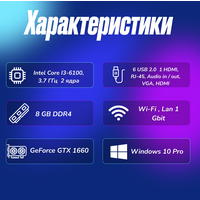 Игровой компьютер Intel Core I3-6100 (3.7ГГц)/ RAM 8Gb/ SSD 240Gb/ HDD 1Tb/ GeForce GTX 1660/ Windows 10 Pro: сравнение цен, характеристики, фото, актуальное наличие и цены.