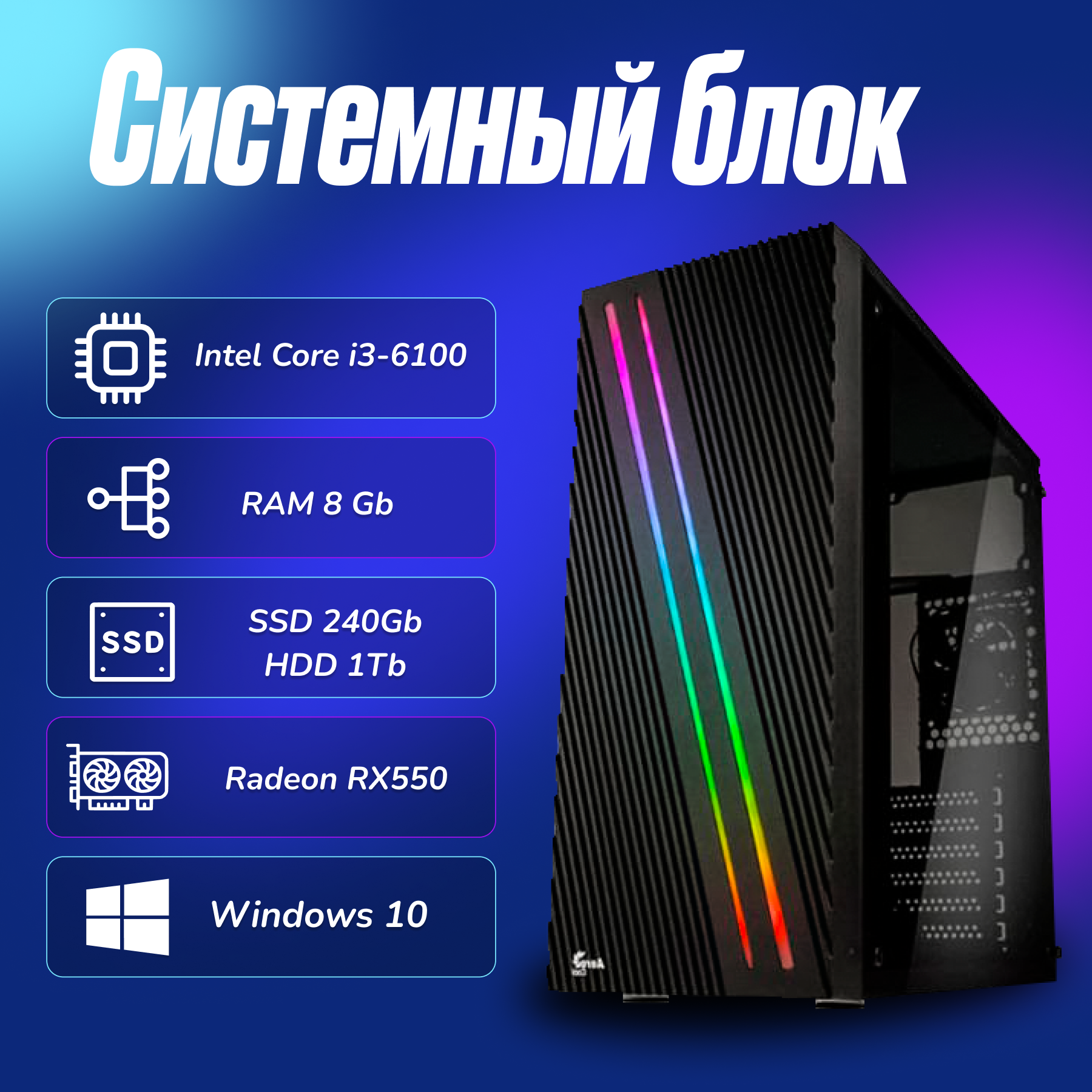 Игровой компьютер Intel Core i3-6100 (3.7ГГц)/ RAM 8Gb/ SSD 240Gb/ HDD 1Tb/ Radeon RX550/ Windows 10 Pro: сравнение цен, характеристики, фото, актуальное наличие и цены.