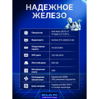 Игровой компьютер на базе Intel E5-2670v3 и 16ГБ DDR4 оперативной памяти обеспечивает максимальную мощность. Игровой пк с RTX 2060 SUPER 8 ГБ поддерживает RayTracing и DLSS, обеспечивая реалистичную картинку и стабильный FPS в Full HD. Компьютер игровой оснащён SSD 512 ГБ, что ускоряет загрузку игр и программ. Системный блок выполнен в корпусе «аквариум» с закалённым стеклом и подсветкой для стабильного охлаждения. ПК игровой дополнен блоком питания 600 Вт Platinum, гарантирующим стабильную работу под нагрузкой. Комп подойдёт для игр, стриминга и профессиональных задач. Настольные компьютеры продаются с гарантией. Подробные характеристики Процессор: Intel E5-2670v3 — 12 ядер, 24 потока, частота до 3.3 ГГц. Отличный вариант для игр, работы с графикой и многозадачности. Оперативная память: 16ГБ ddr4 — комфорт при любых сценариях: игры, монтаж, стриминг. Видеокарта: NVIDIA RTX 2060 SUPER, 8 ГБ GDDR6 — поддержка RayTracing и DLSS. Реалистичная графика и высокая производительность. SSD: 120 ГБ — быстрая загрузка Windows и игр + 500 Гб жесткий диск Материнская плата: X99 Jlite — стабильная работа и современные интерфейсы. Блок питания: 600 Вт, 80+ Platinum — надёжное питание и защита от перепадов напряжения. Кулер: башня, 4 медные трубки, вентилятор 120 мм — эффективное охлаждение CPU. Корпус: аквариум, стеклянные панели, подсветка и 3 вентилятора — современный дизайн и хорошая вентиляция. Гарантия