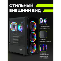 Стильный корпус BaseTech GFX-03 в черном цвете имеет продуманную конструкцию, обеспечивающую эффективную циркуляцию воздуха, что позволяет поддерживать оптимальную температуру даже при высоких нагрузках. Боковая панель из закалённого стекла придаёт корпусу современный вид, позволяя видеть внутренние комплектующие и яркую RGB-подсветку.