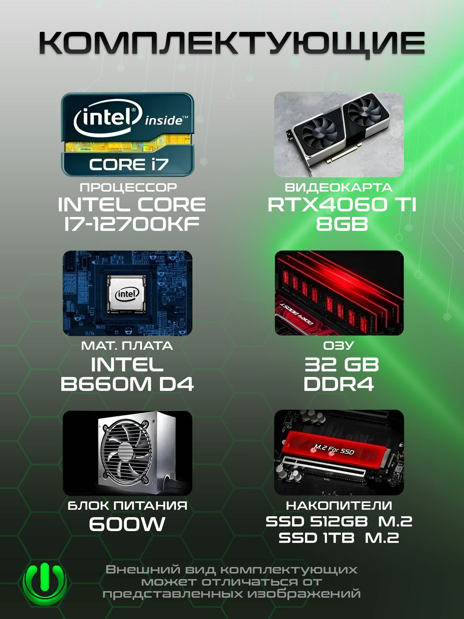 Купить Игровой компьютер PREON CRONOS (i7-12700KF, B760M,32Gb, SSD 512Gb, RTX4060Ti,600W, Win10 PRO, SSD 1Tb, MS Office) с доставкой по всей России.