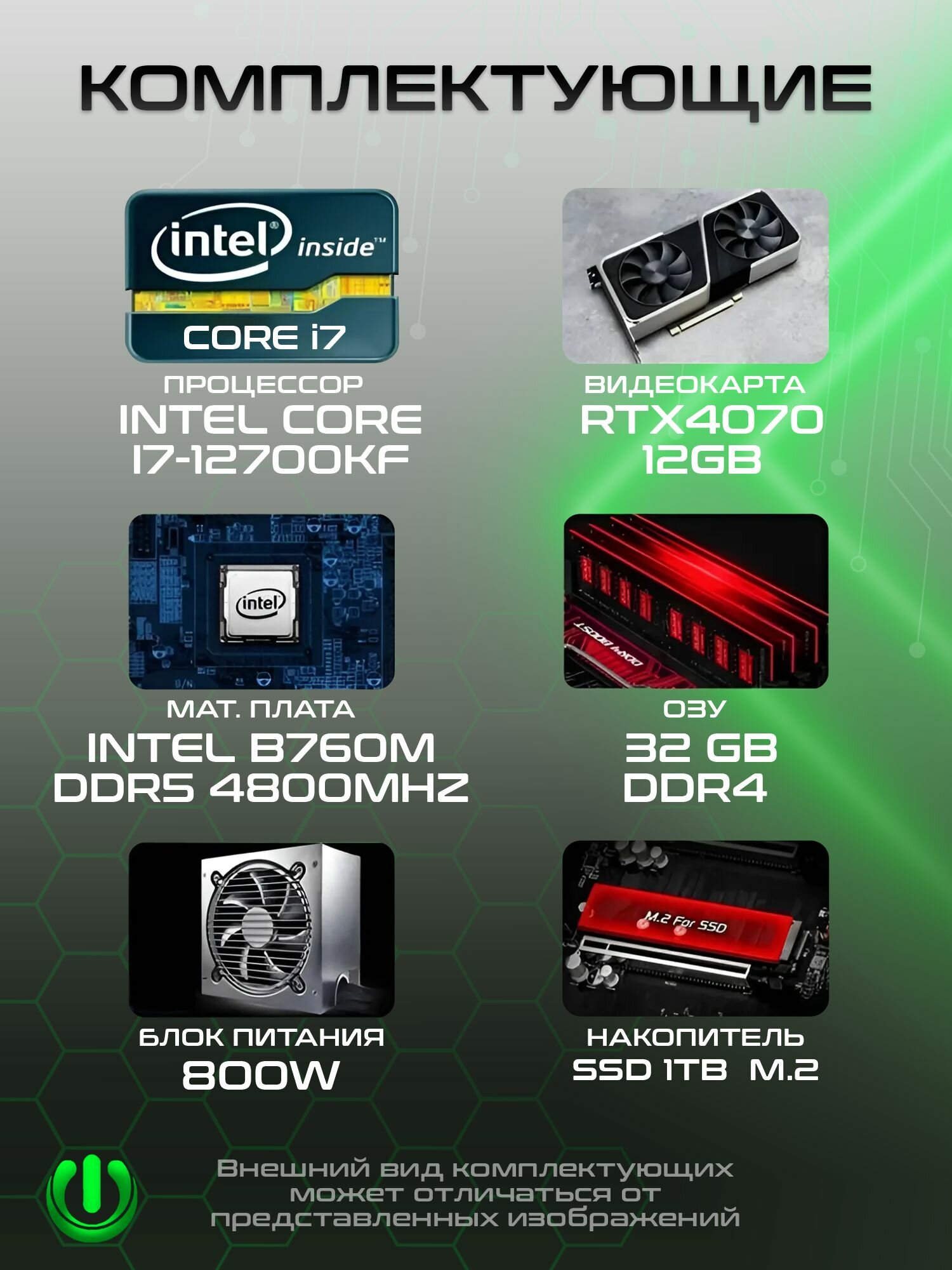Купить Игровой компьютер PREON DEEP X7 (i7-12700KF, B760M,32Gb, SSD 1Tb, RTX4070,800W, Win10 PRO, MS Office) с доставкой по всей России.