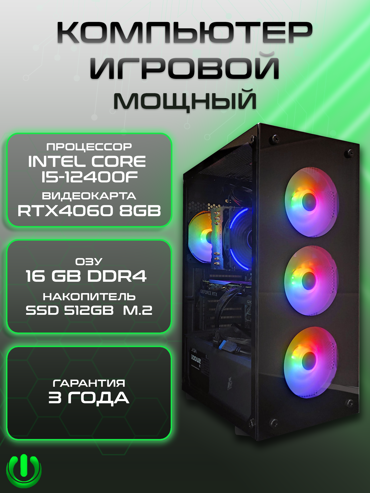 Игровой компьютер PREON Viking NEO (Intel i5-12400F, H610M D4,16Gb, SSD 512Gb, RTX4060,600W, Win10 PRO): сравнение цен, характеристики, фото, актуальное наличие и цены.