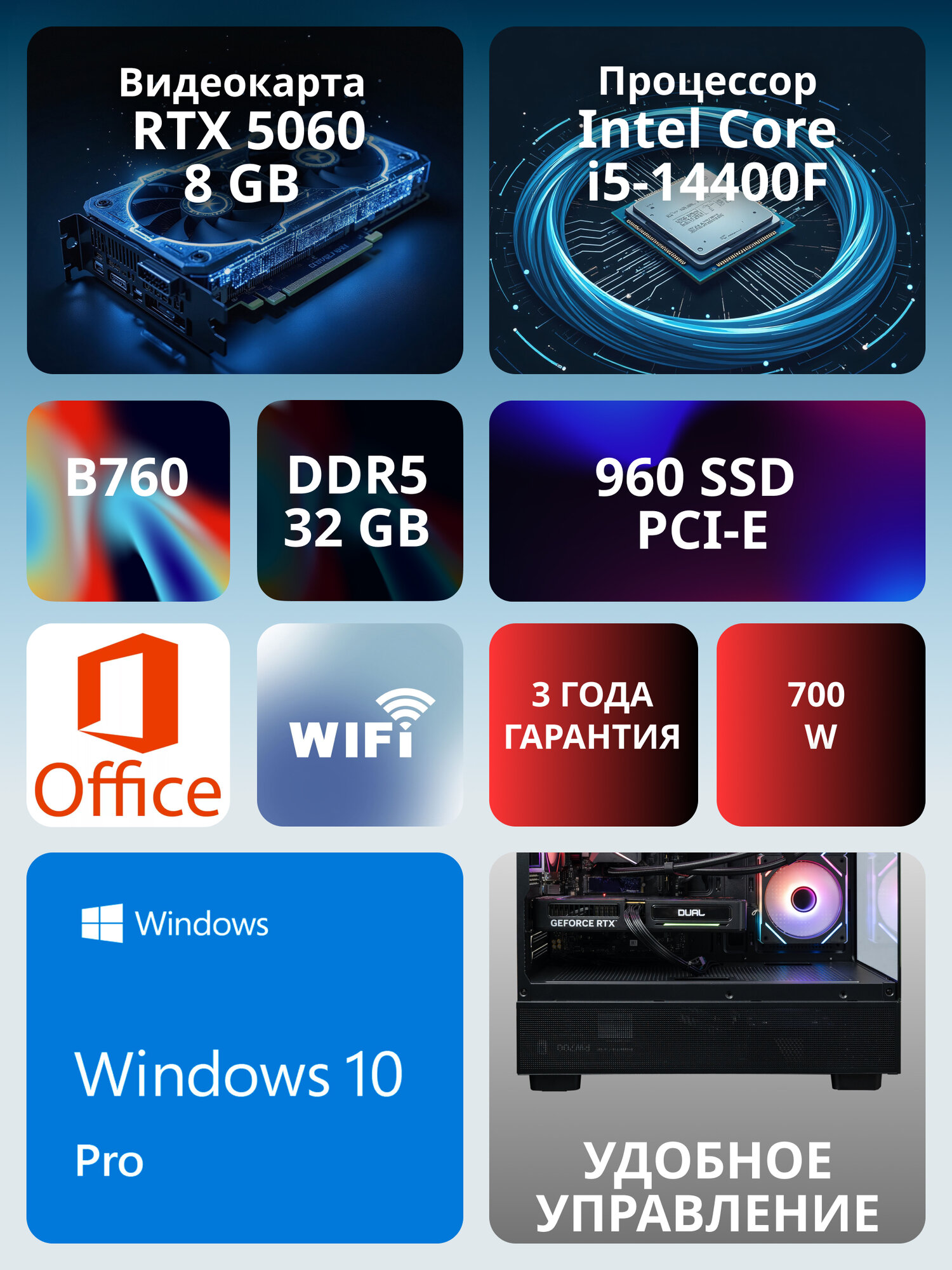Игровой компьютер Robotcomp M-16 V3 Aqua Intel Core i5-14400F 2.5-4.7 GHz — 10 Core / 32GB DDR5 / 960GB SSD PCI-E / GeForce RTX 5060 8GB: сравнение цен, характеристики, фото, актуальное наличие и цены.