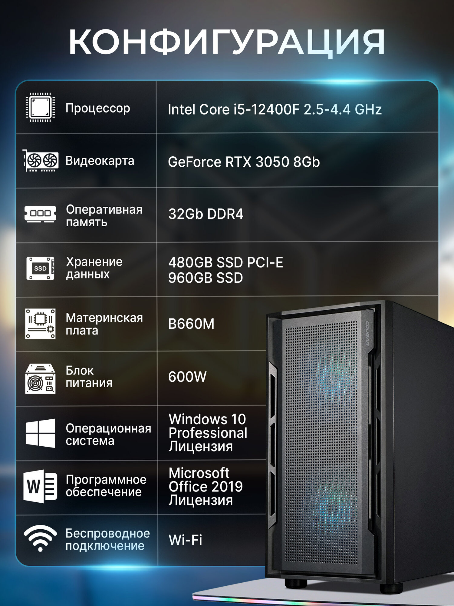 ЦИРКОН V3 PLUS — МОЩНЫЙ ИГРОВОЙ КОМПЬЮТЕР С ВЫСОКОЙ ПРОИЗВОДИТЕЛЬНОСТЬЮ Компьютер «Циркон» создан для тех, кто ценит современные технологии и надежность. Его сбалансированная конфигурация обеспечивает максимальную производительность в играх, работе с графикой, монтажом видео и многозадачности. ________________________________________ Технические характеристики: Intel Core i5-14400F 2.5-4.7 GHz - 10 Core / 64GB DDR5 4800Mhz / 960GB SSD Pcie 4x / GeForce RTX 5060 Ti 8Gb / B760M / 700W / Windows 10 Pro / Ms Office / Wi-Fi / Гарантия 3 года ________________________________________ Процессор: Intel Core i5-14400F (10 ядер, до 4.7 GHz) 10-ядерный процессор с турбочастотой 4.7 GHz гарантирует плавную работу в ресурсоемких задачах: от запуска современных игр до рендеринга видео и потоковой трансляции. Оперативная память: 64GB DDR5 4800 MHz Объемная и быстрая память DDR5 позволяет одновременно работать с десятками приложений, держать открытыми сотни вкладок и не беспокоиться о замедлениях даже при максимальной нагрузке. Видеокарта: GeForce RTX 5060 Ti 8GB Мощная видеокарта с поддержкой трассировки лучей и DLSS обеспечивает детализированную графику в 2K-разрешении и высокий FPS в самых требовательных играх. Идеальный выбор для геймеров и дизайнеров. Накопитель: 960GB SSD PCIe 4x Высокая скорость чтения/записи сокращает время загрузки игр и приложений до минимума. Объема хватит для установки ПО, проектов и медиатеки. Материнская плата: B760M + Блок питания 700W Надежная плата с поддержкой апгрейда и мощный блок питания обеспечивают стабильность системы даже при будущем обновлении компонентов. ________________________________________ ПРЕИМУЩЕСТВА КОМПЬЮТЕРА «ЦИРКОН»: • Производительность — оптимизация для игр, творческих задач и многозадачности. • Скорость — мгновенная загрузка благодаря SSD и DDR5. • Надежность — качественные компоненты и продуманное охлаждение. • Апгрейд — запас мощности для модернизации в будущем. ________________________________________ Доверьтесь технологиям будущего уже сегодня.