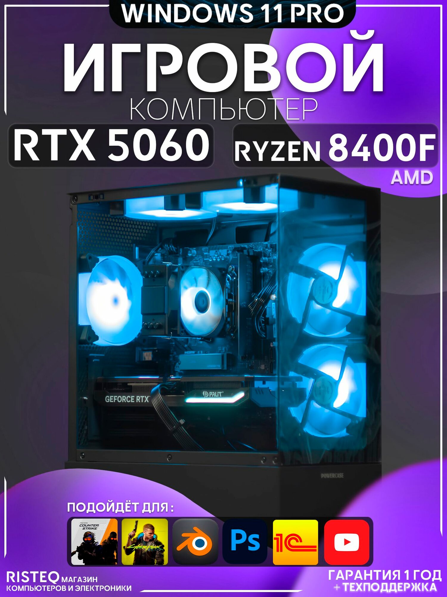Купить Игровой компьютер Ryzen 5 8400F, RTX 5060 8GB, SSD 512GB, 16GB DDR5, БП 600W, Black Basic Aqua с доставкой по всей России.