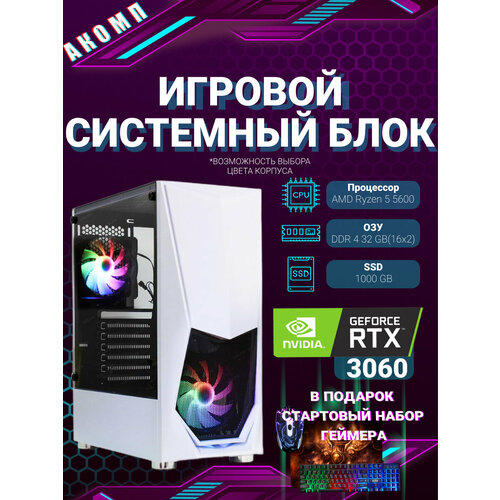 Игровой компьютер (системный блок) AMD Ryzen 5 5600 GeForce RTX 3060 12Gb 32GB DDR4 SSD 1000гб Белый: сравнение цен, характеристики, фото, актуальное наличие и цены.