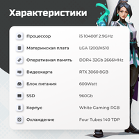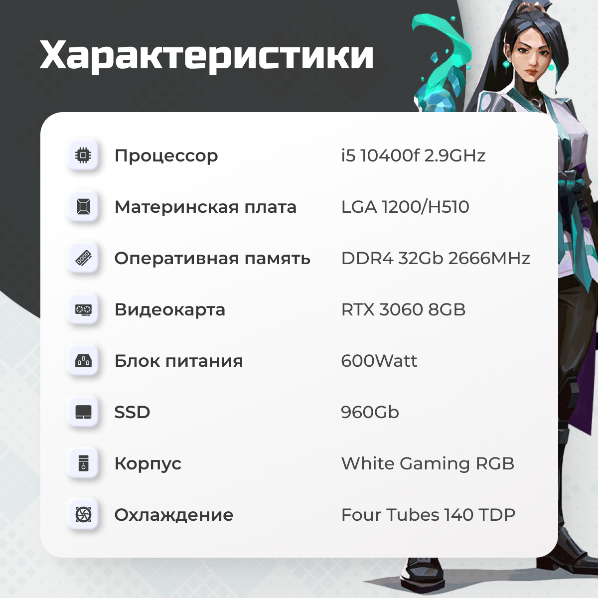 Купить ПК Игровой Компьютер Intel Core i5 10400f (2.9 ГГц), RAM 32 ГБ, SSD 960 ГБ, NVIDIA GeForce RTX 3060 8Gb Treidcomputers с доставкой по всей России.