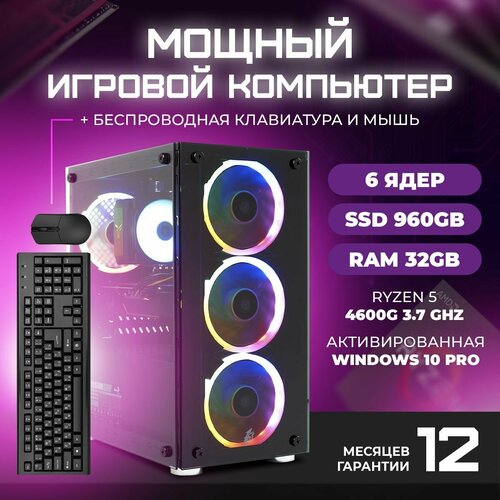 Игровой компьютер TREIDCOMPUTERS Системный блок Ryzen 5 4600G 3.7 (6 ядер) / 32 Гб / SSD 960 gb / AMD Radeon Vega 7