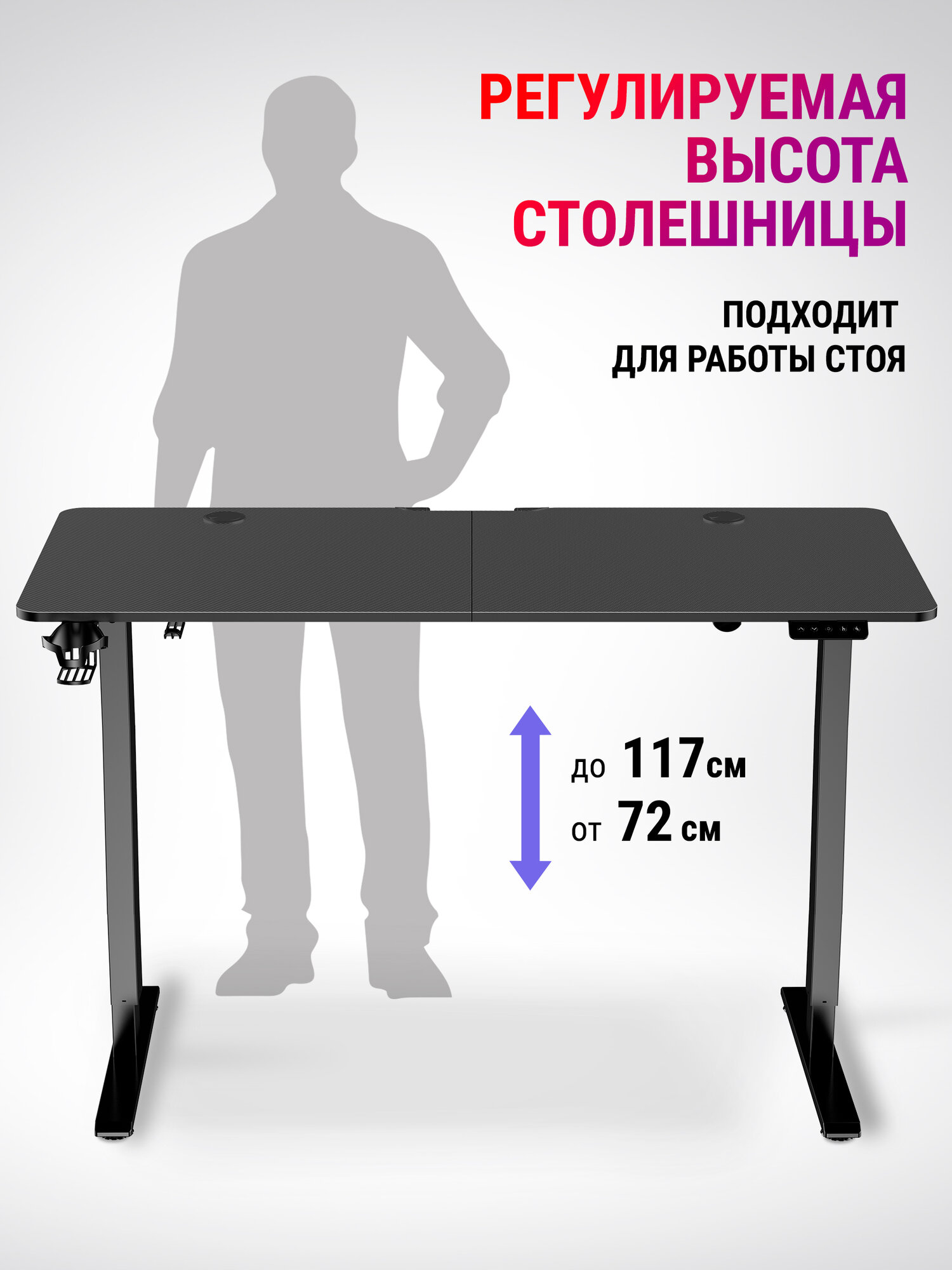Стол имеет размеры 140 см в ширину, 60 см в глубину и изменяемую высоту 72-117 см, что делает его достаточно просторным для размещения всего необходимого оборудования.