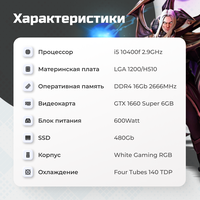 Купить Игровой Компьютер Системный блок с процессором Intel Core i5 10400f/(2.9 ГГц), RAM 16 ГБ, SSD 480 ГБ, NVIDIA GeForce GTX 1660 Super (6 Гб) с доставкой по всей России.
