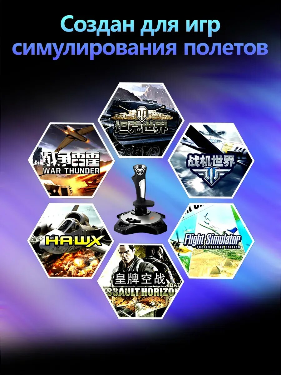 。 Эргономичный дизайн создает приятное впечатление от полета. 2. Встроенный вибратор - благодаря регулировке вибрации можно воспроизвести реалистичные ощущения от игры. 3. С четырьмя осями, 8-разрядной клавиатурой Kurikulia и 12 программируемыми функциональными клавишами; 4. Высокоточный линейный потенциометр используется в сочетании с функцией аппаратной коррекции для обеспечения точного управления; 5. Настройка драйверов, поддержка многих пользователей в настройке и сравнении мощных функций клавиатуры и мыши; 6. Четыре большие и прочные присоски обеспечивают надежную фиксацию и простоту использования. 7. Поддерживайте Windows XP/7/8/11 , Играйте в основную летную игру на основном ПК, подходящую для обучения авиамоделированию.