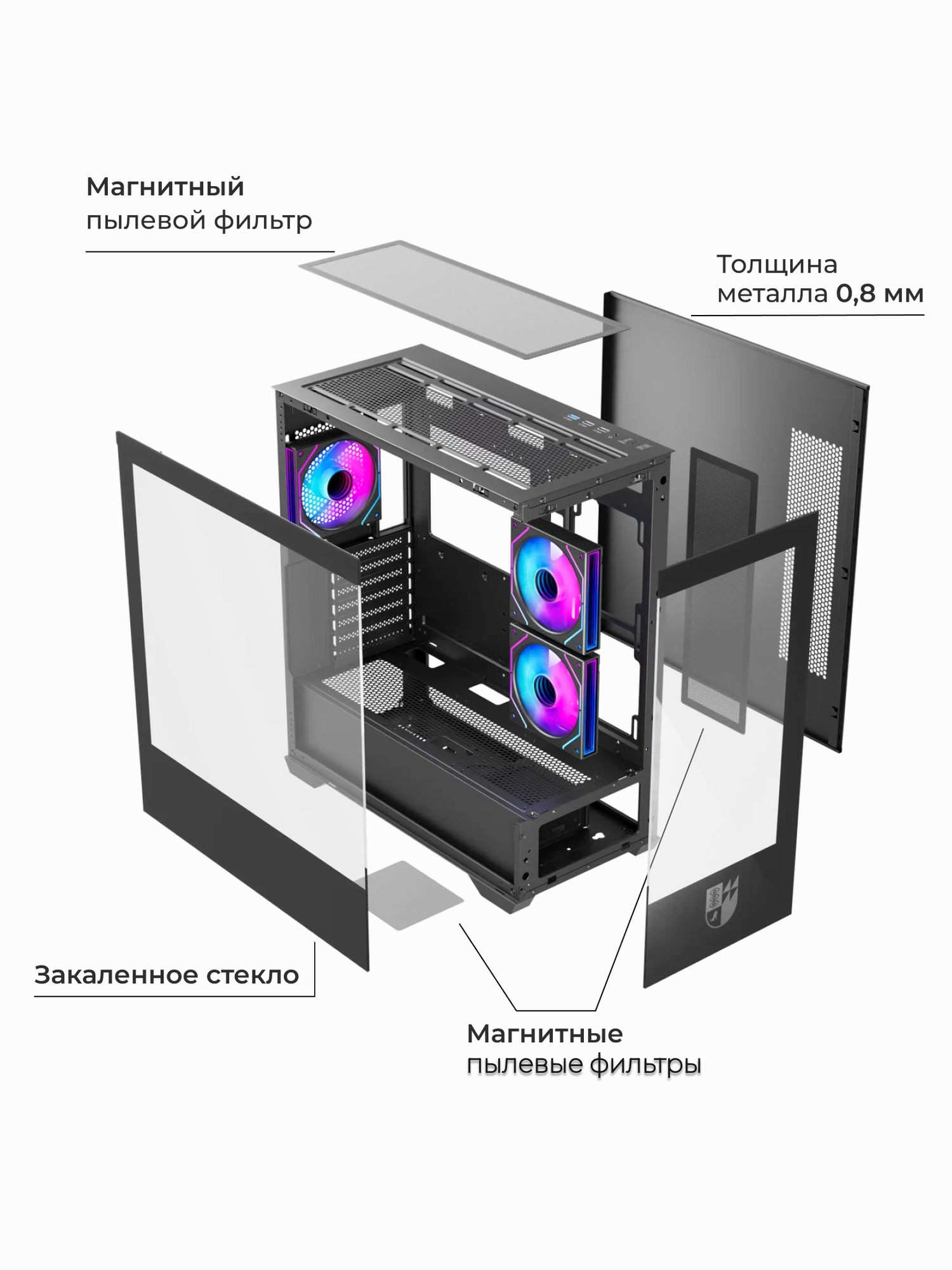 Корпус Invader Q6 + 3 ARGB вентилятора + закаленное стекло, ATX, Micro-ATX, Mini-ITX: сравнение цен, характеристики, фото, актуальное наличие и цены.