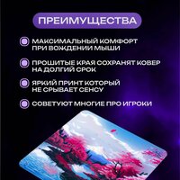 Большой игровой ковер для мыши изготовлен из современного материала, который отличается высокой прочностью, износостойкостью и устойчивостью к истиранию. Коврики обеспечивают плавное и точное скольжение мыши, а также легко поддаются очистке. Большой игровой коврик для мыши, с новой более плотной и крепкой прошивкой краев, отличает оригинальный, стильный, универсальный, в стиле аниме дизайн поэтому не изнашивается, не деформируется при длительном использовании. Геймерский коврик подходящий к любой периферии, придаст вашему рабочему месту стиль в офисе и дома, подходит для всех типов игр, от динамичных FPS-шутеров до масштабных MMORPG и был разработан с учетом мнений профессиональных игроков из CS: GO, VALORANT, DOTA 2, APEX LEGENDS, OVERWATCH, FORTNITE. Большой размер 500x500 мм отлично подойдет каждому пользователю. Удобство и комфорт при работе за ПК или ноутбуком. Является лучшим подарком для геймера. Коврик для мышки оптимизирован для быстрого движения, сохраняя при этом превосходную скорость и контроль во время работы или игры. Быстрое скольжение мыши по ковру. Данный коврик позволит максимально комфортно ощущать мышь на коврике. Материал high density в коврах для мыши обеспечивает особую плотность и долговечность изделия. Благодаря высокой плотности такой коврик отличается устойчивостью к износу и деформациям, а также предоставляет отличные условия для плавного и быстрого скольжения мыши с высокой точностью. Покрытие типа Speed на коврах отличается гладкой и ровной поверхностью, что обеспечивает быстрое и легкое скольжение мыши. Это позволяет пользователям минимизировать сопротивление и достичь высокой скорости передвижения, что особенно ценно для геймеров и тех, кто требует молниеносного отклика и высокой динамики. Прочная текстурированная основа из резины надежно фиксирует ковер на столе. Хорошо работает на всех типах поверхности. Прошитые края обеспечат отличный вид ковра на долгий срок.