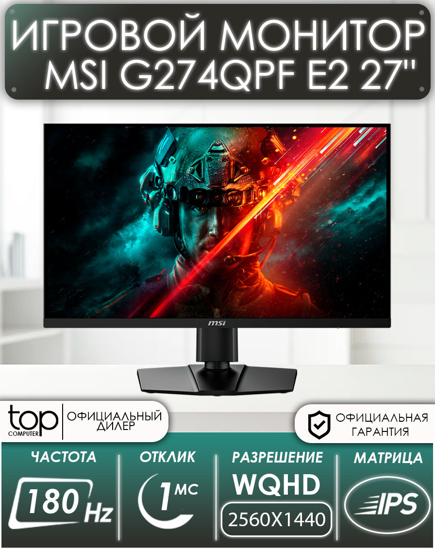 Игровой монитор 27″ MSI G274QPF E2 , 2560×1440, IPS, 180Гц, 2хHDMI, 1хDP, черный 9S6-3CC29H-460: сравнение цен, характеристики, фото, актуальное наличие и цены.