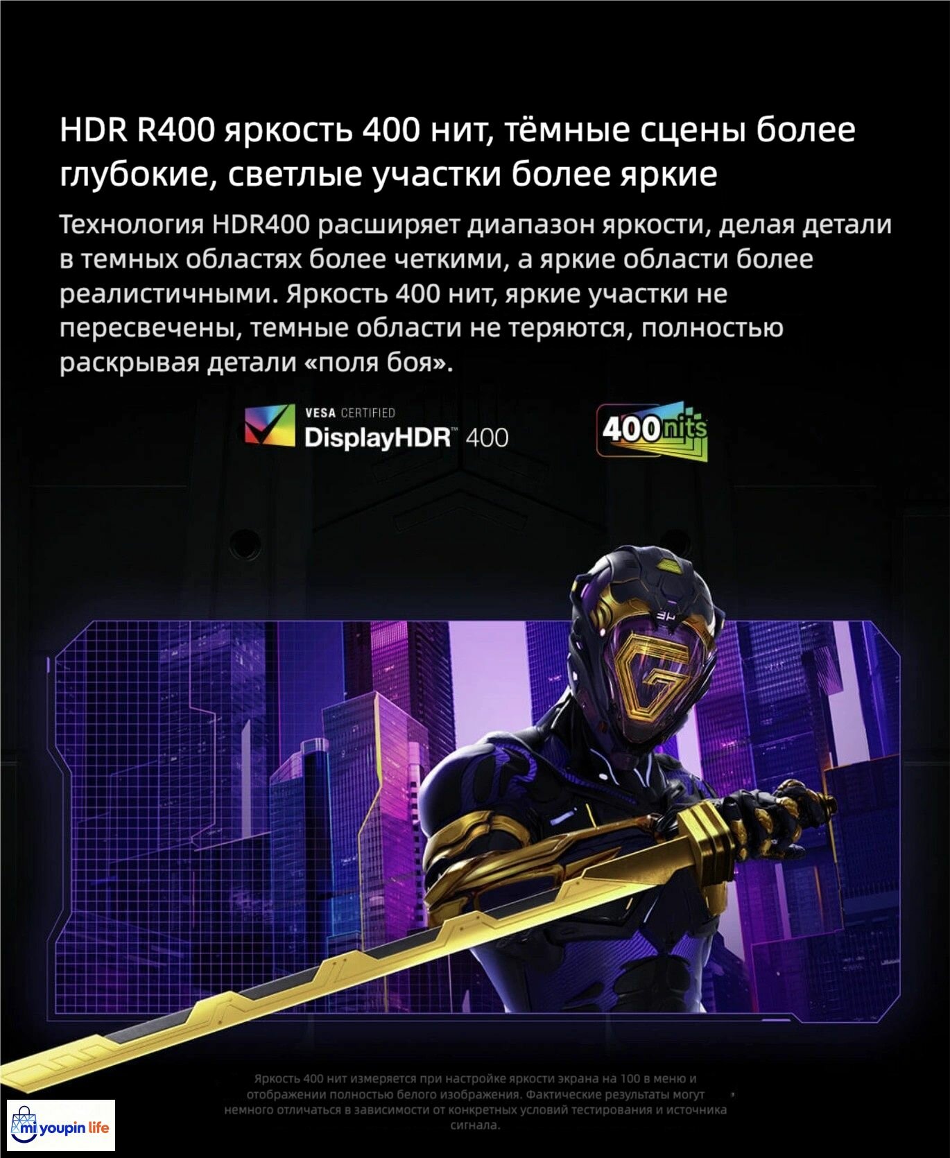 | Поддержка стандартов HDR | DisplayHDR 400, HDR10 |