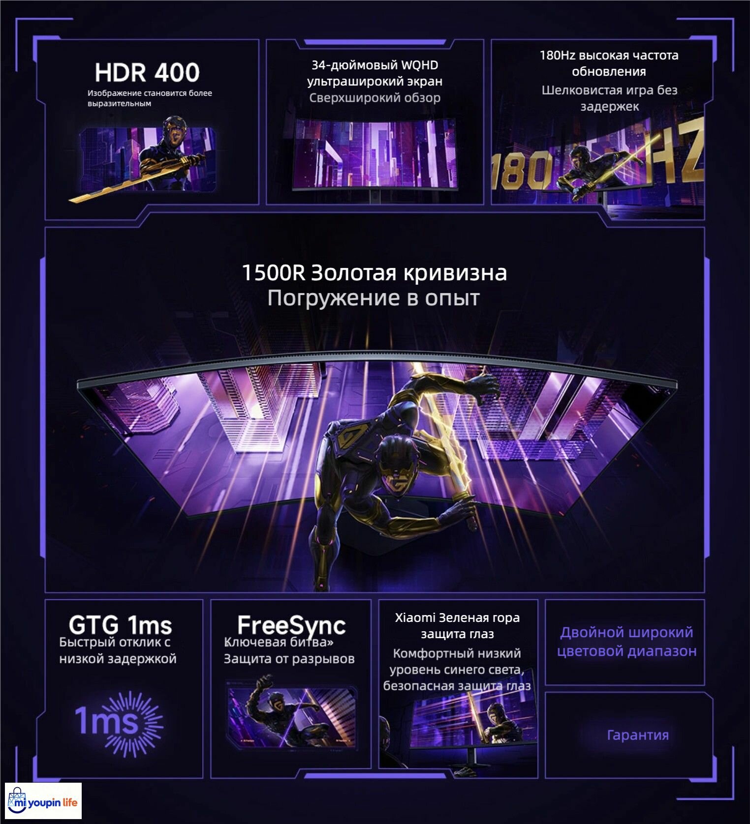 Купить Монитор Xiaomi Redmi G34WQ 2026 180Hz HDR 400 WQHD 1500R изогнутый экран FreeSync GTG 1ms с доставкой по всей России.