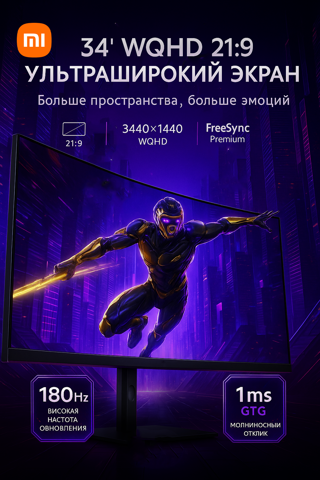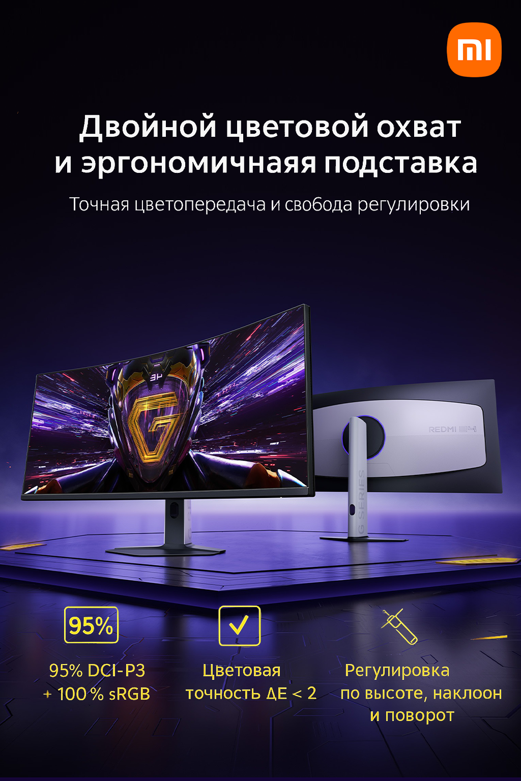 Купить Игровой монитор Xiaomi Redmi G34WQ 2026 34″, 180 Гц, UWQHD 3440×1440, изогнутый, черный (C34WQDA-RG) с доставкой по всей России.
