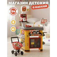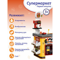 Игровой набор "Супермаркет" для игры в магазин обязательно понравится детям. В комплект входят: большой игрушечный прилавок с вывеской и полочками, кофейный аппарат, касса с игрушечным POS-терминалом и сканером, продуктовая корзинка, всевозможные продукты, а также игрушечная кредитная карта и игрушечные деньги. При проведении картой в POS-терминале и нажатии кнопки на сканере раздаётся звуковой сигнал и загорается световой индикатор. Эти особенности набора добавляют особую реалистичность игре. Игра развивает коммуникативные навыки, воображение, логику, мелкую моторику, а также тренирует навыки устного счета. Размер упаковки: 60х16х46 см В комплекте: 54 предмета. Рекомендуемый возраст: от 3 лет