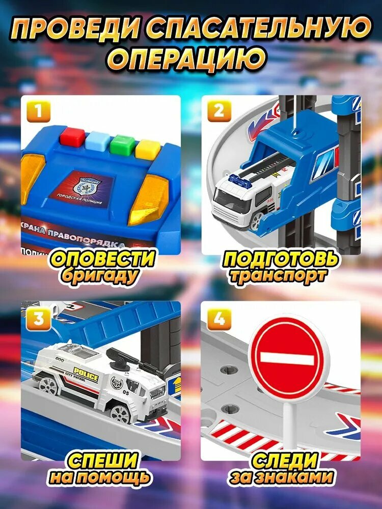 Игровой набор автотрек «Полиция», парковка для машинок, с лифтом, 2 автомобиля, вертолет, дорожные знаки: сравнение цен, характеристики, фото, актуальное наличие и цены.